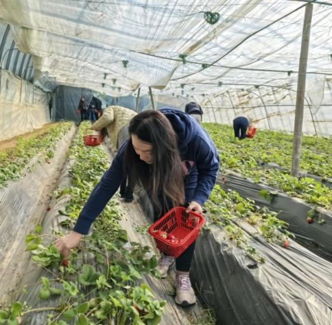 采摘园内春意盎然,女职工们分组深入草莓棚、番茄园和青椒种植区,亲手采摘新鲜果蔬。草莓红艳欲滴、番茄晶莹剔透、青椒翠绿饱满,大家在欢声笑语中感受劳动乐趣,满载而归。